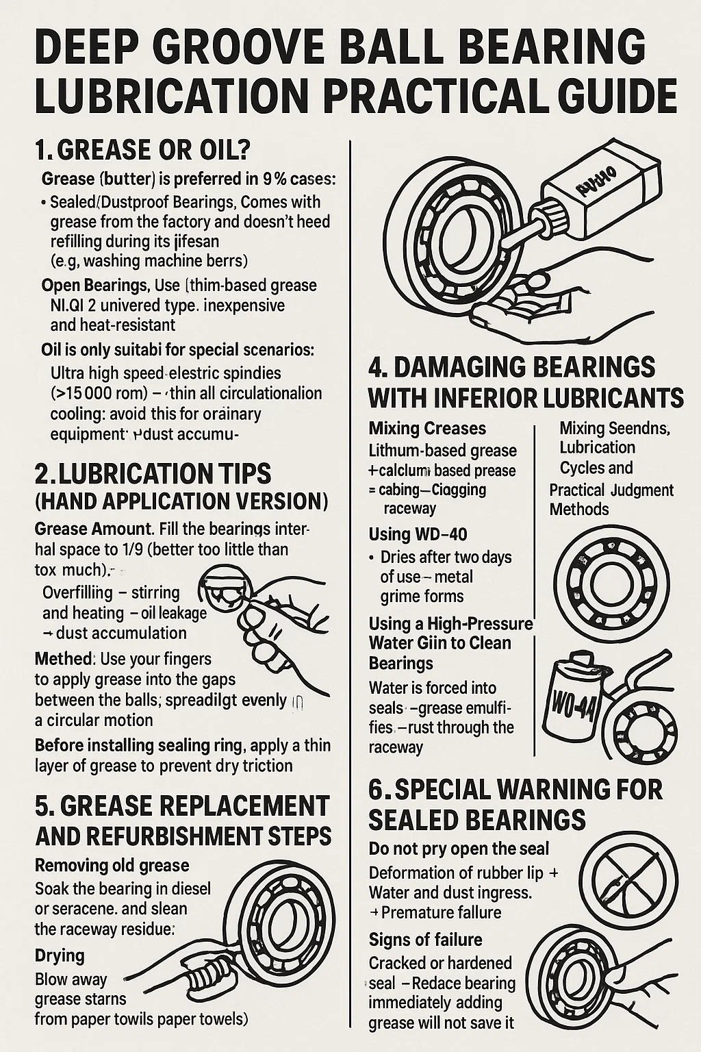 Grease berasaskan gris berasaskan gris lithium = caking → menyumbat raceway.